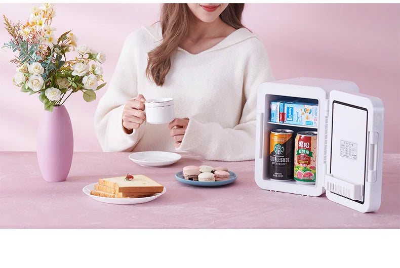 4L Portable Makeup Fridge with LED Light Mirror for Home & Car Use