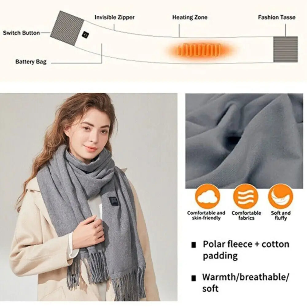 USB Plug-In Heated Scarf with 3 Temperature Modes – Fast Heating & Washable