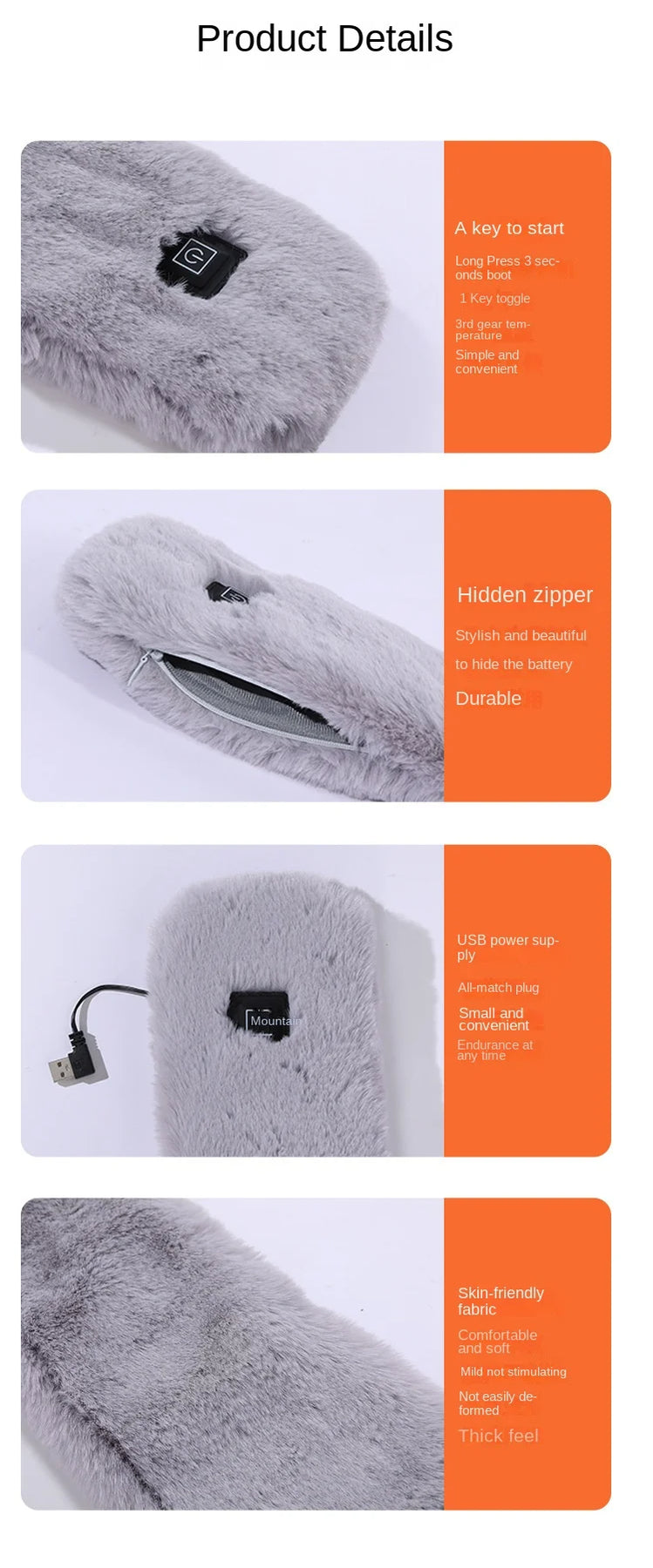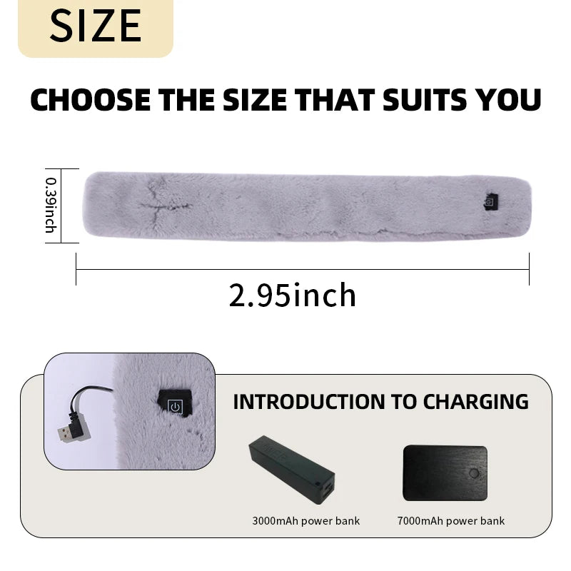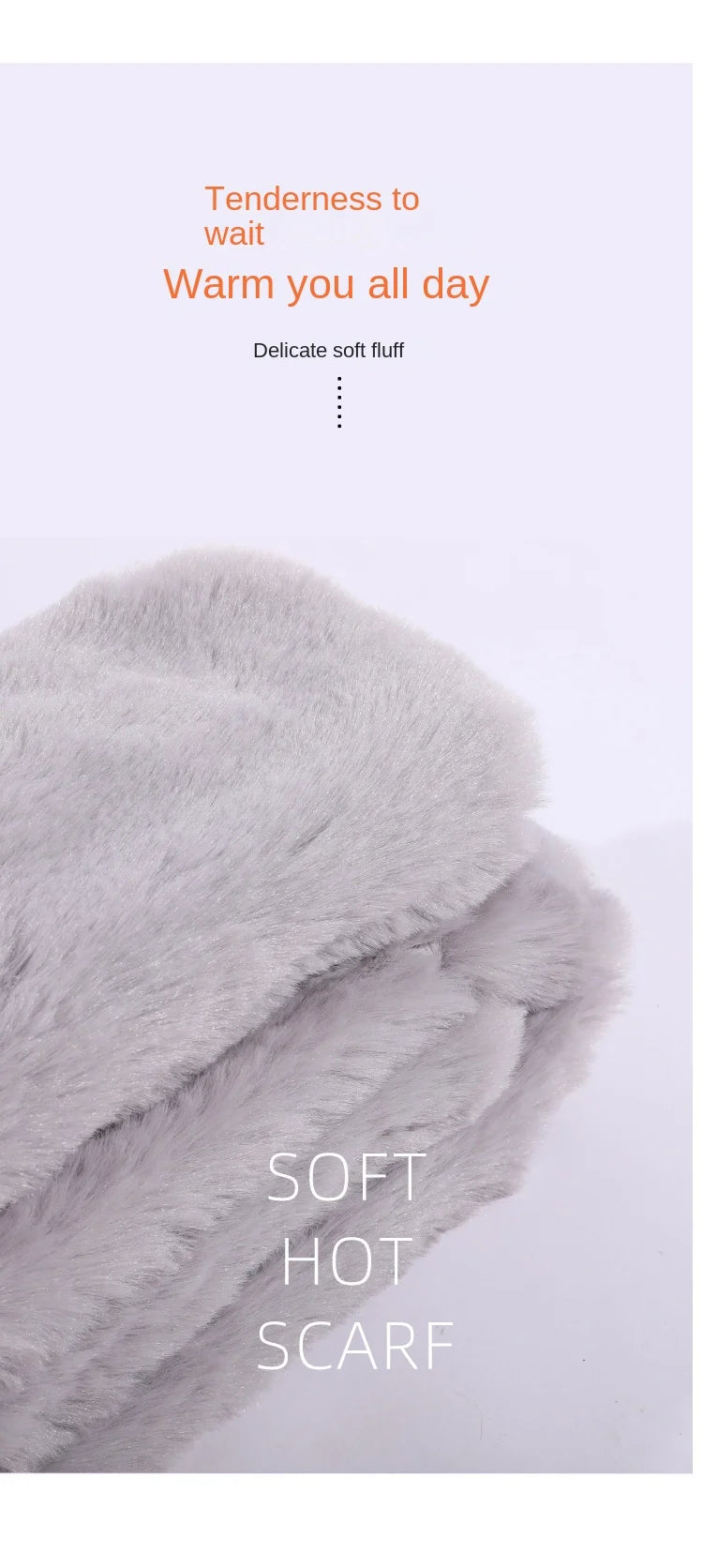 USB Soft Plush Heated Scarf with Faux Fur – Washable & Winter Warmth