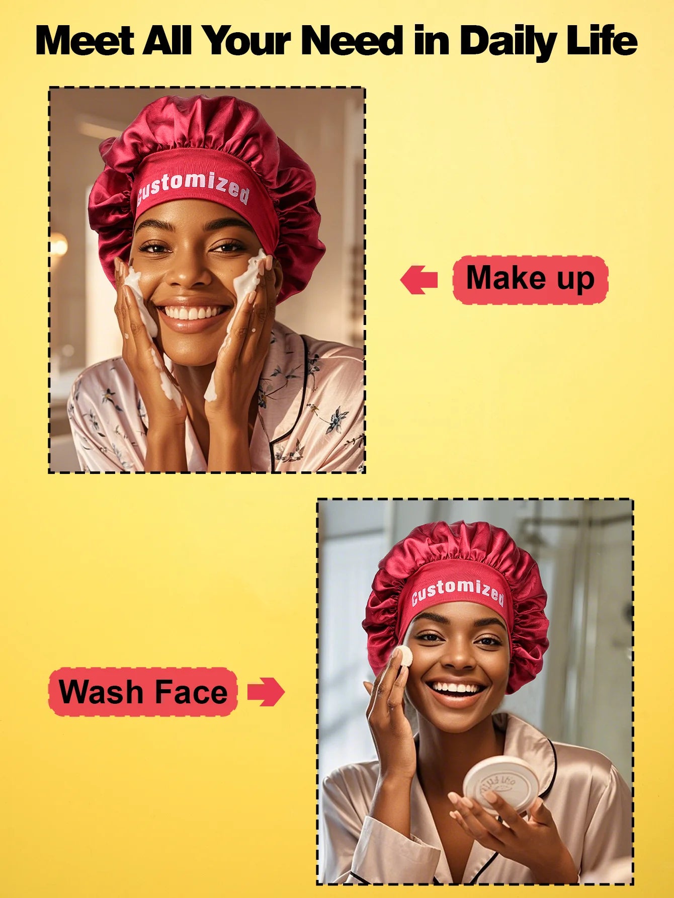 Custom Name Adjustable Satin Sleep Bonnet for Women