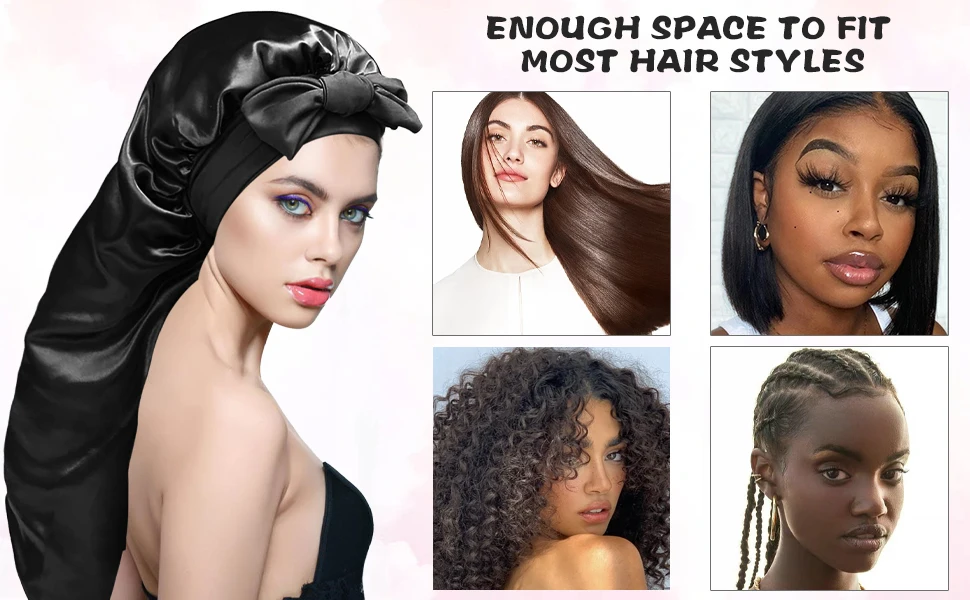 Extra-Large Silk & Satin Sleep Bonnet with Elastic Band